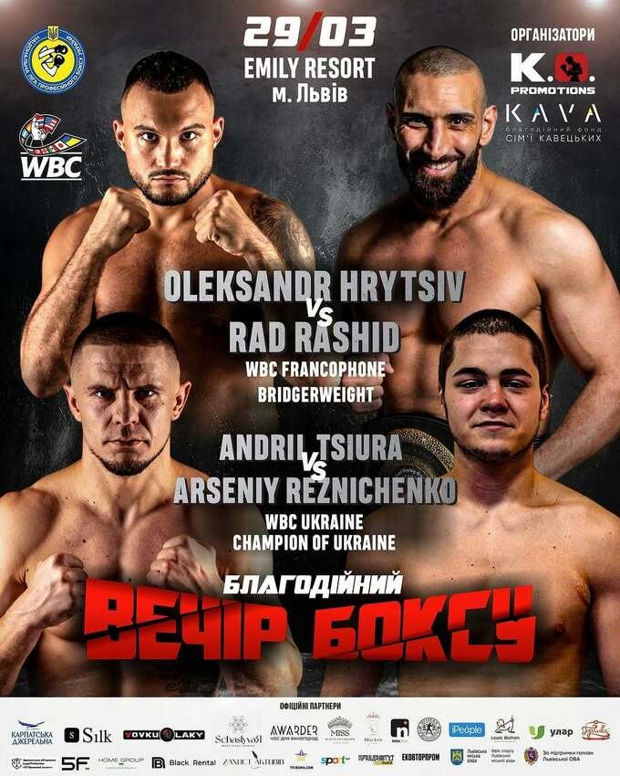 29 березня у комплексі «Emily Resort» (Львів) відбудеться вечір боксу, організований промоутерською компанією KO Promotions.