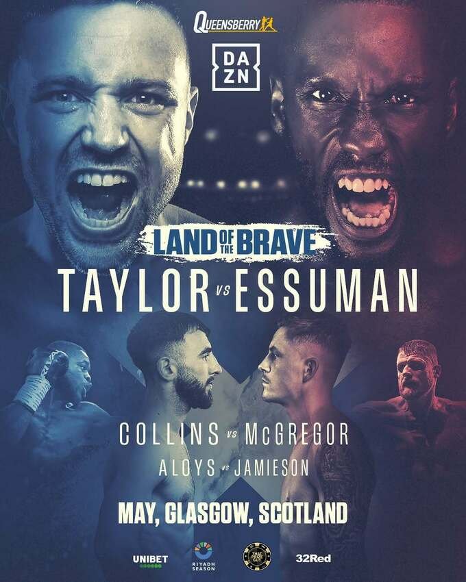 Головною подією стане бій у напівсередній вазі (до 66,7 кг), де зустрінуться колишній абсолютний чемпіон, шотландець Джош Тейлор (19–2, 13 КО) та уродженець Ботсвани Екоу Ессуман (21–1, 8 КО), який виступає під британським прапором.